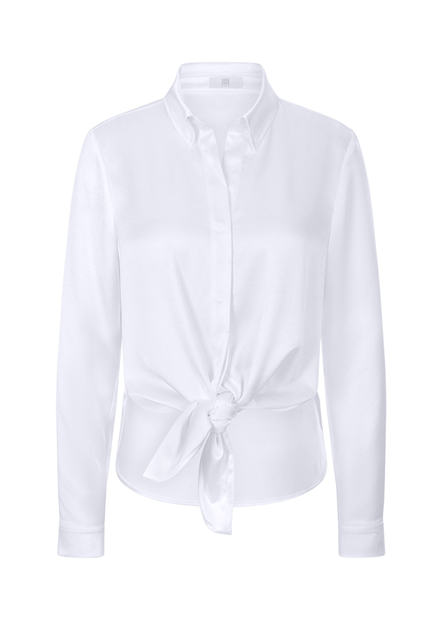 Fashion highlight: elegance meets comfort! The heavy flowing premium satin gives this long-sleeved RIANI blouse with a shirt collar a sophisticated touch, while the knot detail at the front adds a casual touch. Combine it with a skirt or wide suit trousers - and you'll be perfectly dressed for any occasion!