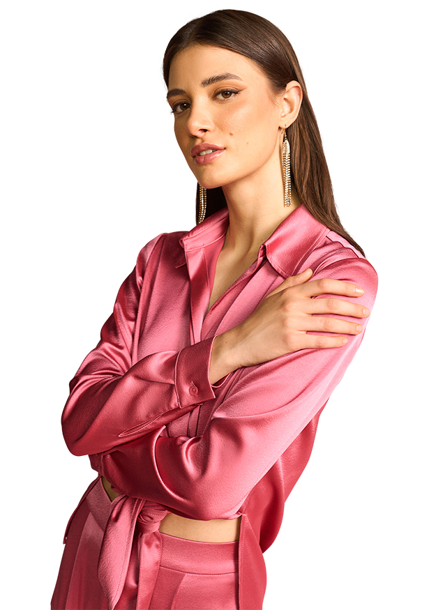 Fashion highlight: elegance meets comfort! The heavy flowing premium satin gives this long-sleeved RIANI blouse with a shirt collar a sophisticated touch, while the knot detail at the front adds a casual touch. Combine it with a skirt or wide suit trousers - and you'll be perfectly dressed for any occasion!