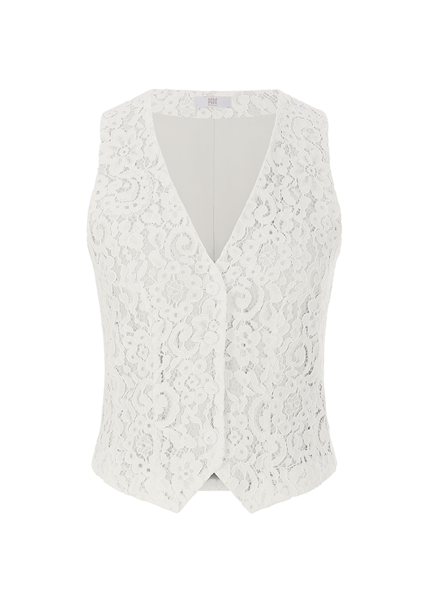 An exciting contrast! This masculine-inspired waistcoat from RIANI features feminine lace material made from a high-quality cotton-viscose blend, making it an exciting eye-catcher. This fashion piece in off-white can be combined in a variety of ways - whether with suit trousers or a denim skirt. Simply amazing!