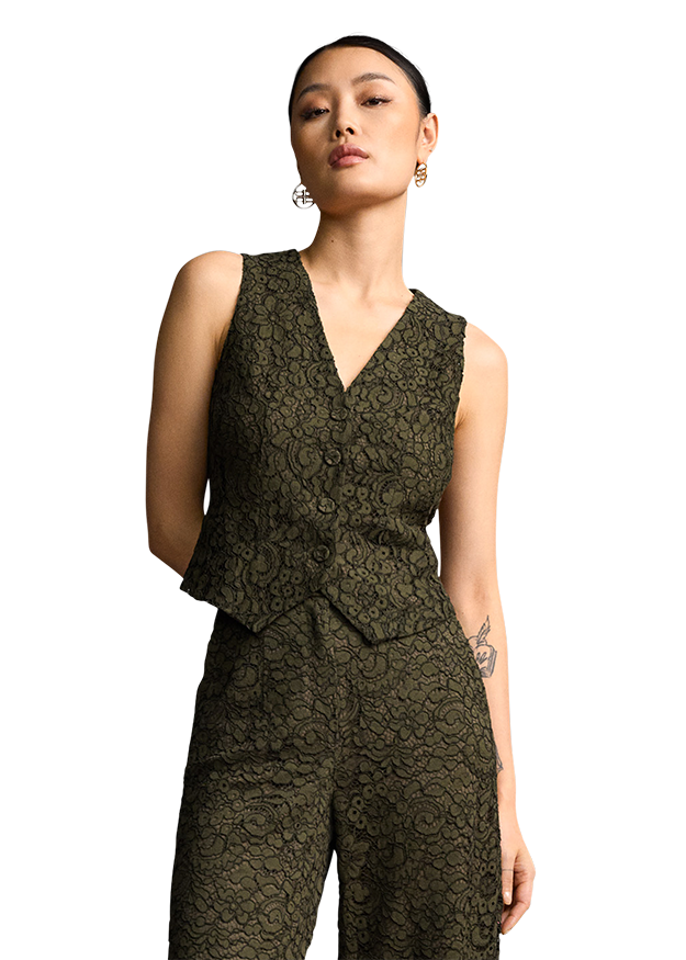 An exciting contrast! This masculine-inspired waistcoat from RIANI features feminine lace material made from a high-quality cotton-viscose blend, making it an exciting eye-catcher. This fashion piece in off-white can be combined in a variety of ways - whether with suit trousers or a denim skirt. Simply amazing!