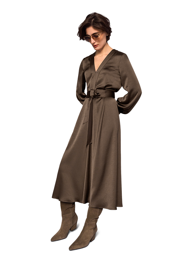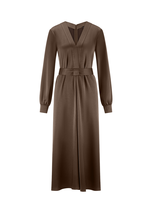 This long dress with bow from RIANI brings feminine glamour to your wardrobe. The flowing fabric flatters your silhouette, while the elegant V-neck and long sleeves ensure timeless elegance. The highlight: the wide bow at the waist, which stylishly accentuates your look and ensures a perfect fit. Whether for special occasions or everyday wear, this dress will always keep you looking stylish and make a confident fashion statement.