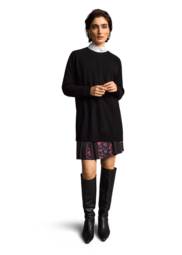 The must-have basic! This RIANI jumper made from a fine cashmere blend combines high-quality comfort with timeless elegance. Its classic, long cut with a round neckline makes it versatile - whether with trousers, a skirt or shorts. A long-lasting favourite that perfectly complements your wardrobe and always stays on trend!