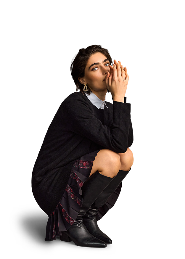 Our model wears size 36.