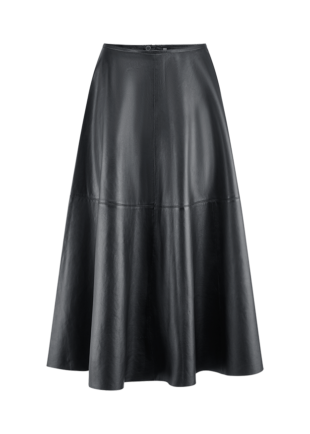 The long leather skirt by RIANI perfectly balances modern coolness and timeless elegance. Crafted from high-quality, supple leather, it impresses with its clean lines and fluid silhouette. Whether styled edgy with knitwear and boots or sophisticated with a blouse and heels, this premium piece is a versatile it-piece for RIANISTAs who wear bold looks with style and confidence.