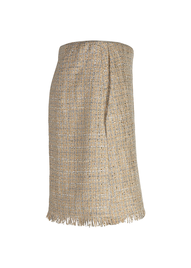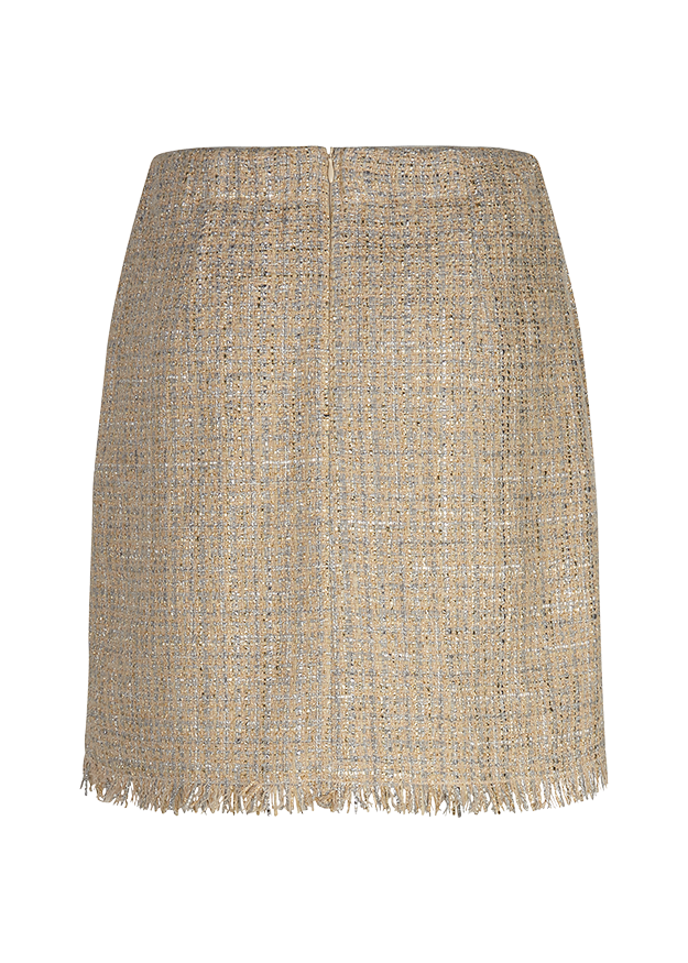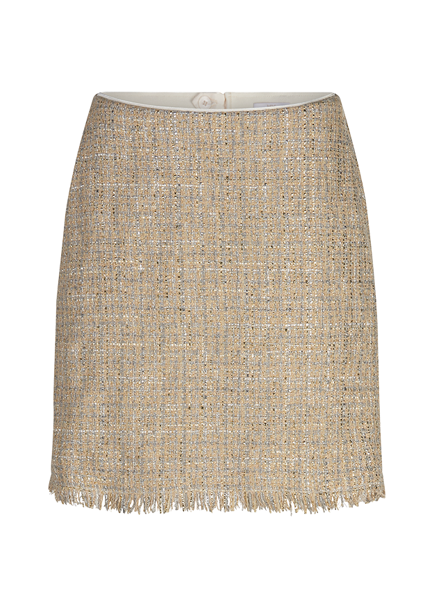 Simply stylish: that's this metallic tweed mini skirt with its sparkling metallic threads. The sophisticated texture and shiny effect of the fabric make this skirt a special highlight. The tassled hem adds a chic touch to the design. Wear it with a fashionable knitted top and high boots to create a great contemporary look – one of many possibilities.