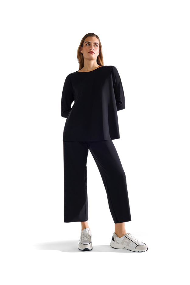 Ready for your new favourite piece? The oversized jersey shirt from RIANI plays with a casual cut and high-performance active jersey - super stretchy, soft and with no irritating seams. The seamless shoulder section and cropped batwing sleeves make this shirt minimalist, comfortable and yet with character - perfect for anyone who loves basics with that little something extra.