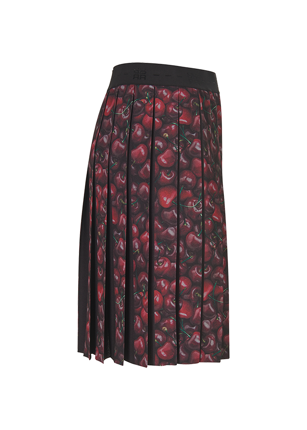 Not cherries on top but cherries on a skirt! The short pleated skirt from RIANI with the alternating wild cherry print and black pleated fabric is a real eye-catcher. The skirt is the perfect mix of cool and playful - especially when paired with boots. A look that is just as wild as the print and will make you an instant trendsetter. Simply a style to fall in love with!