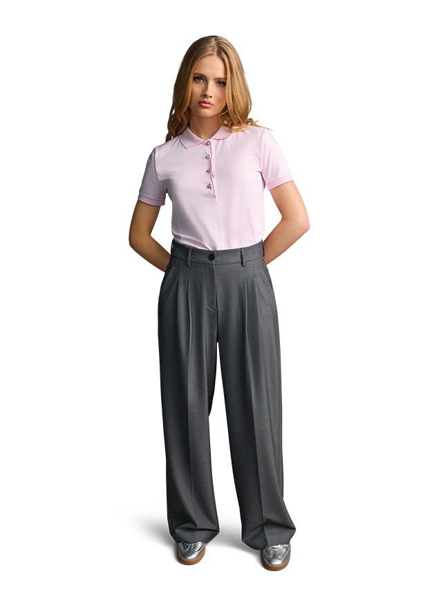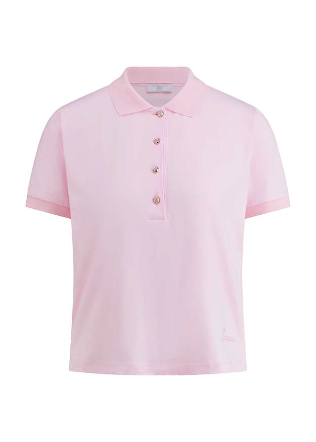 Nerdy boyish vibes with a feminine twist! This RIANI polo made of high-quality cotton combines a classic cut with modern details, such as the eye-catching silver jewellery buttons. Combine it with suit trousers and a shopper bag - and your look is perfect! Whether you're in the office or at a garden party, you'll always be perfectly dressed with this it-piece.