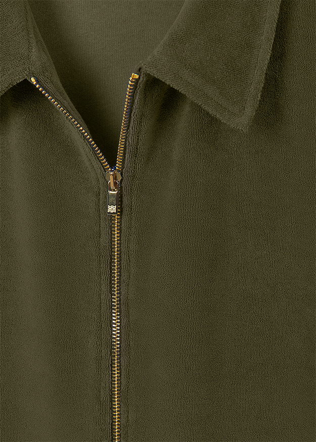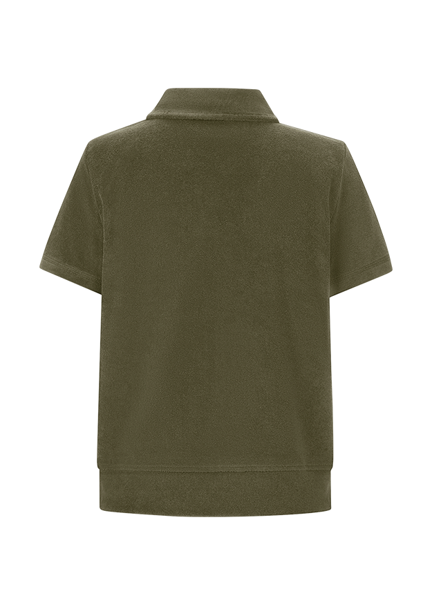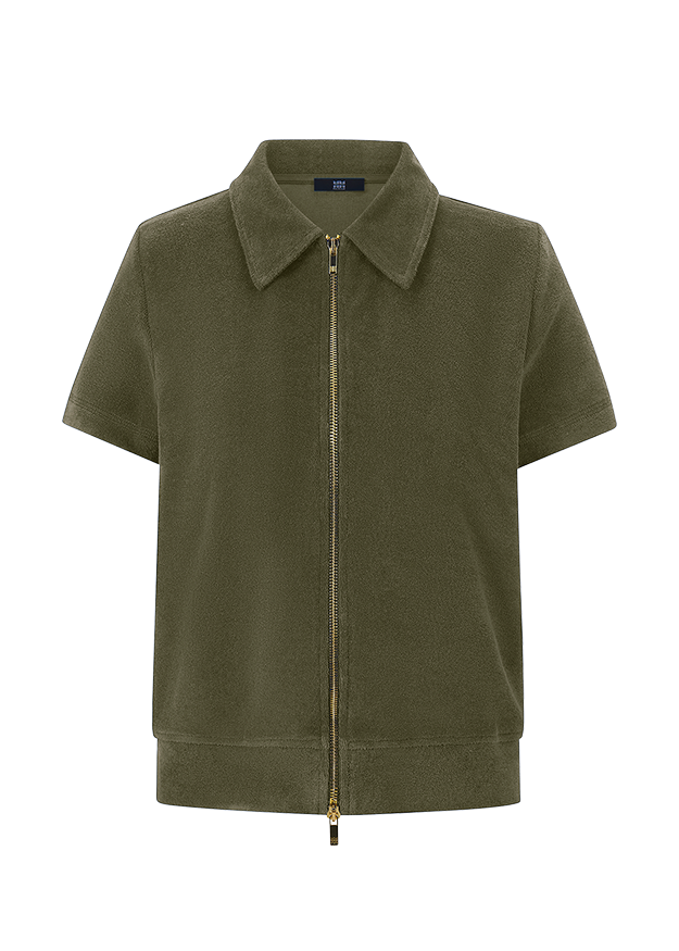 This fashionable shirt combines a sporty polo style with soft terrycloth and a practical zip, making it an elegant and versatile styling highlight. When closed, this basic piece exudes a chic severity, while open it offers a casual look. Whether worn with trousers or a skirt, for everyday wear or the office - this shirt is suitable for every occasion and an exclusive RIANI must-have for your closet.