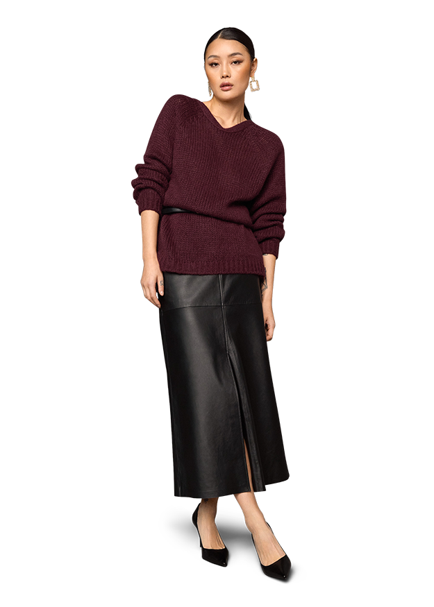 Soft & cosy! This versatile cardigan from RIANI is a real 2-in-1 highlight: whether worn in a classic style or as a jumper with the button placket on the back - it adapts to your look. Made from our cosy knit material mix of alpaca wool, polyamide and merino wool, it is not only super comfortable, but also wonderfully soft on the skin. Perfect in combination with our leather skirt for a stylish, eye-catching outfit!