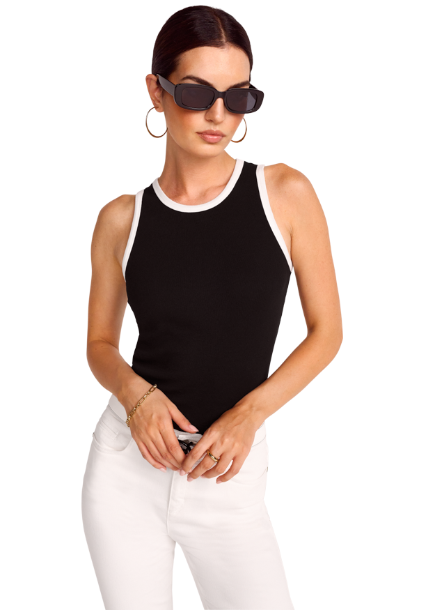 Absolutely hip! Ribbed jersey tops are so in. These flattering and comfortable tops are perfect for that casual, sporty yet stylish look. The soft, stretchy jersey hugs your figure and makes you feel great all day long. For that everyday look, wear it with jeans and sneakers, be cooler with a biker jacket and tight leather trousers.