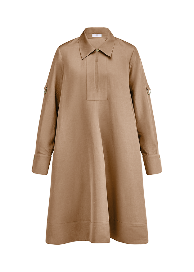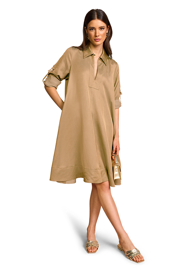 Airy, light and elegant - the Livi satin dress is a real eye-catcher. The classic collar gives the dress timeless sophistication, while the loose cut and roll-up sleeves make it pleasantly light. The elegant sheen of the fabric makes this dress a stylish RIANI highlight that looks both chic and relaxed - simply irresistible!