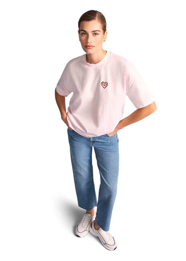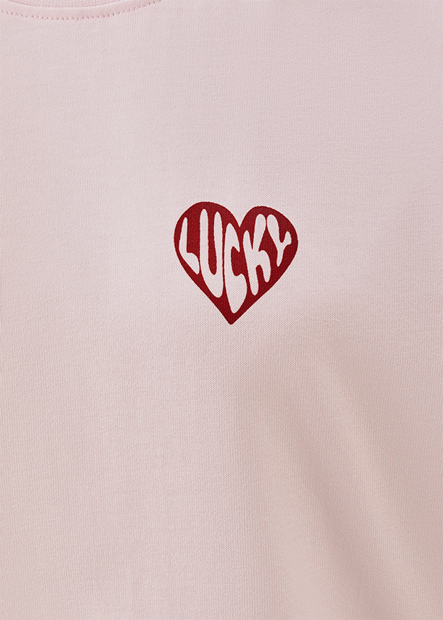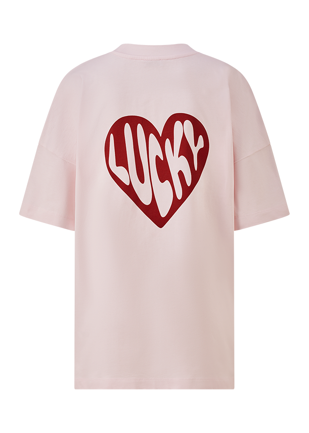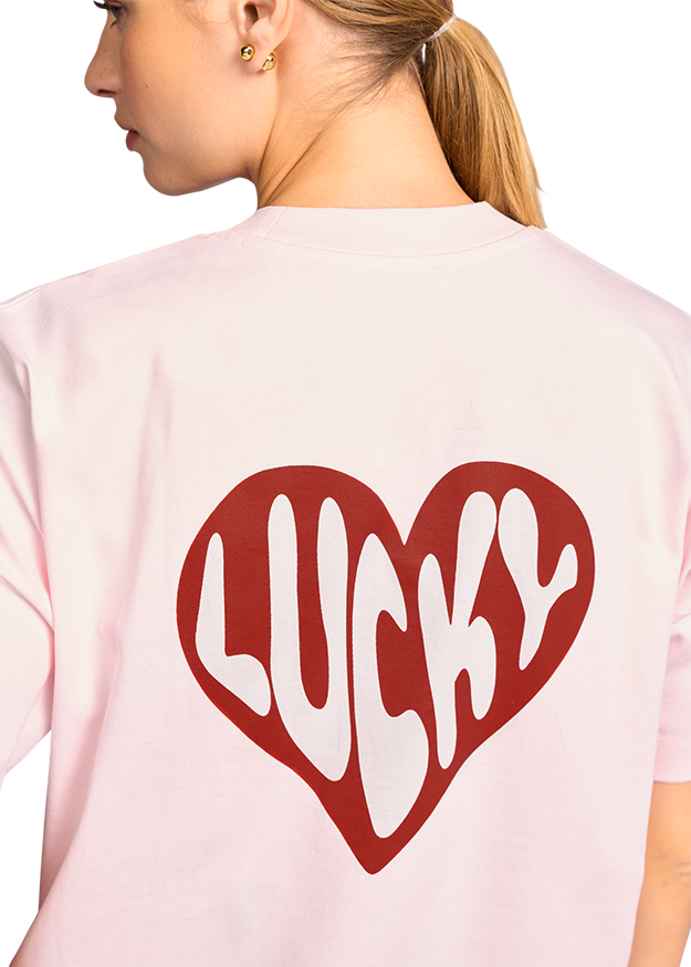 T-shirt with heart-shaped "Lucky" lettering