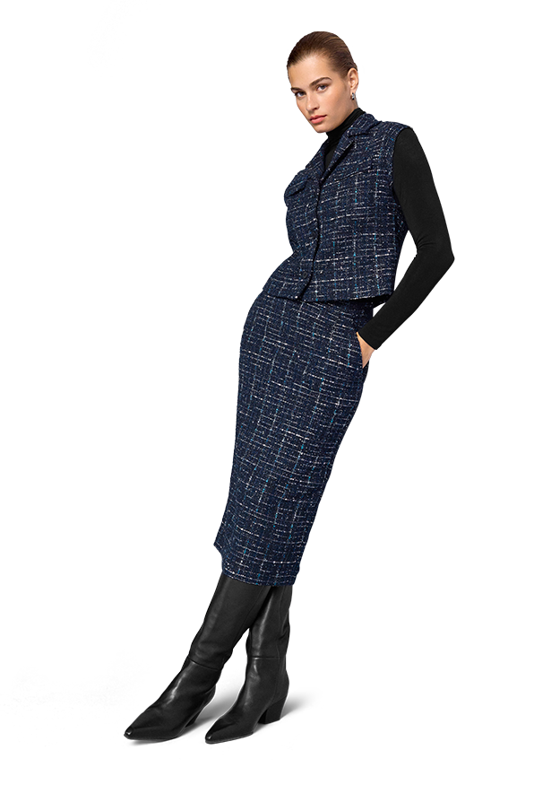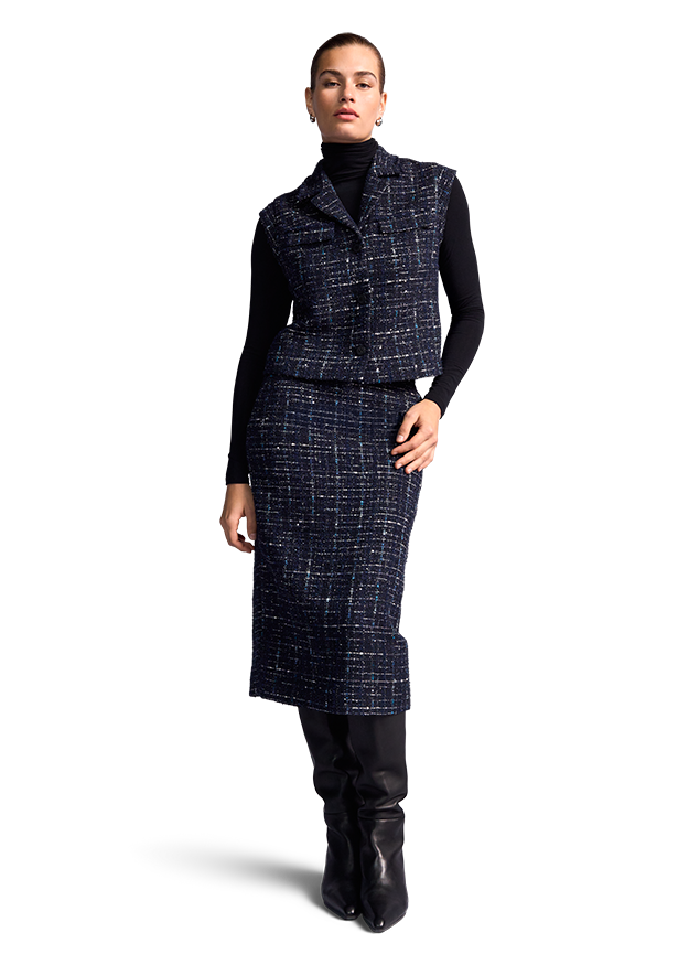 The RIANI midi tweed skirt combines classic tweed style with a modern, feminine cut. Its premium material quality ensures a refined feel and perfect fit. Whether styled with a blouse for the office or a sweater for a casual look, this skirt is a versatile premium piece for RIANISTAs who love classic elegance with contemporary flair.