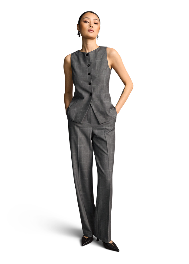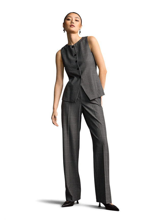 Masculine chic! These wide RIANI trousers in an elegant windowpane pattern are the epitome of style and comfort. With a loose cut, slit pockets and a high waistband, they offer perfect comfort and a modern look at the same time. An essential fashion basic that no wardrobe should be without - always trendy and versatile.