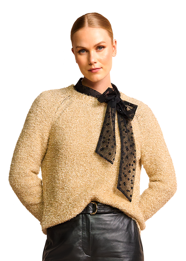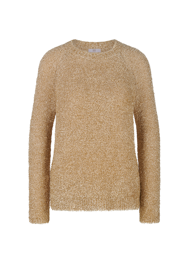 As an absolute fashion piece, this shiny metallic jumper will make any look an eyecatcher. The metallic look, which runs through all products, is completely in. The first touch of the wonderfully soft wool with its high viscose content shows that our piece is also wonderfully comfortable. A round neckline, raglan sleeves and a loose, straight cut round off the design.
