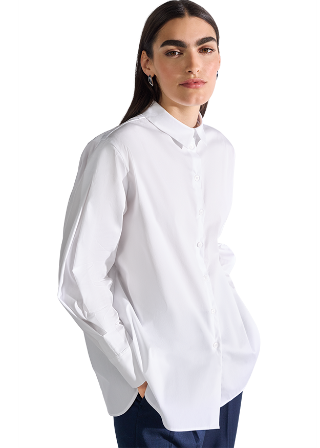 The poplin blouse by RIANI impresses with its smooth, finely woven surface and clean cut. It combines traditional chic with modern lightness, making it an essential basic for stylish looks. Whether worn for business or styled casually, its premium quality and perfect fit make it a versatile piece for RIANISTAs who love timeless elegance.