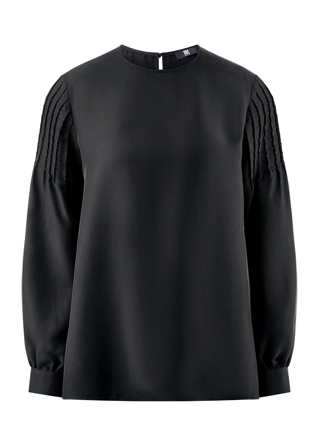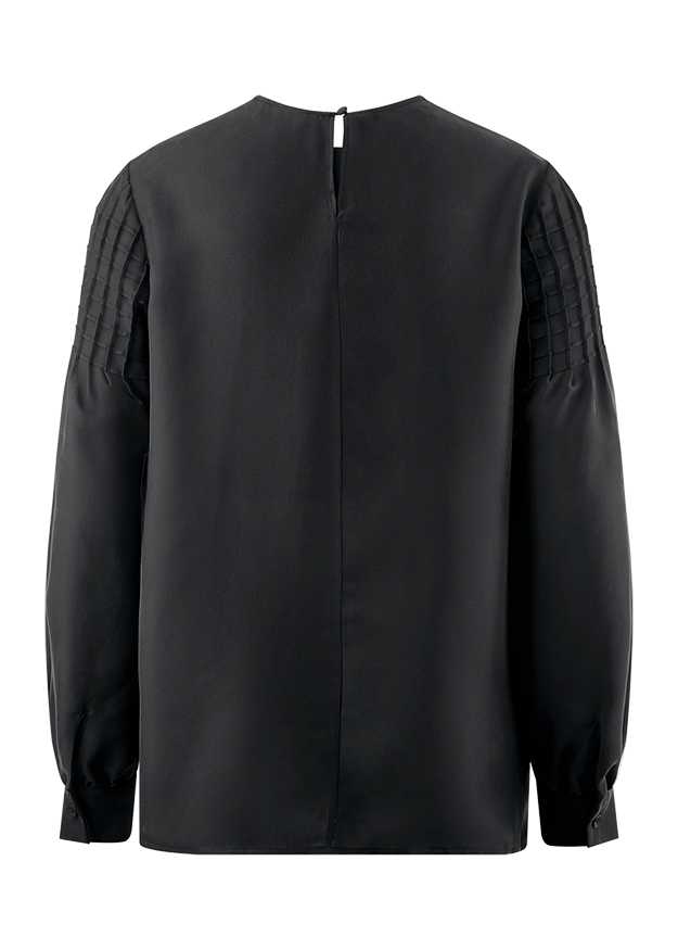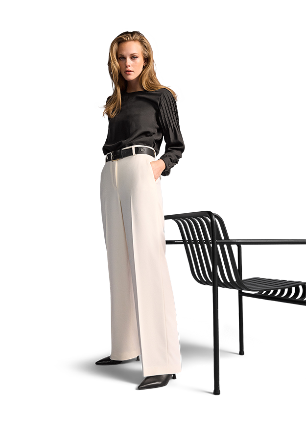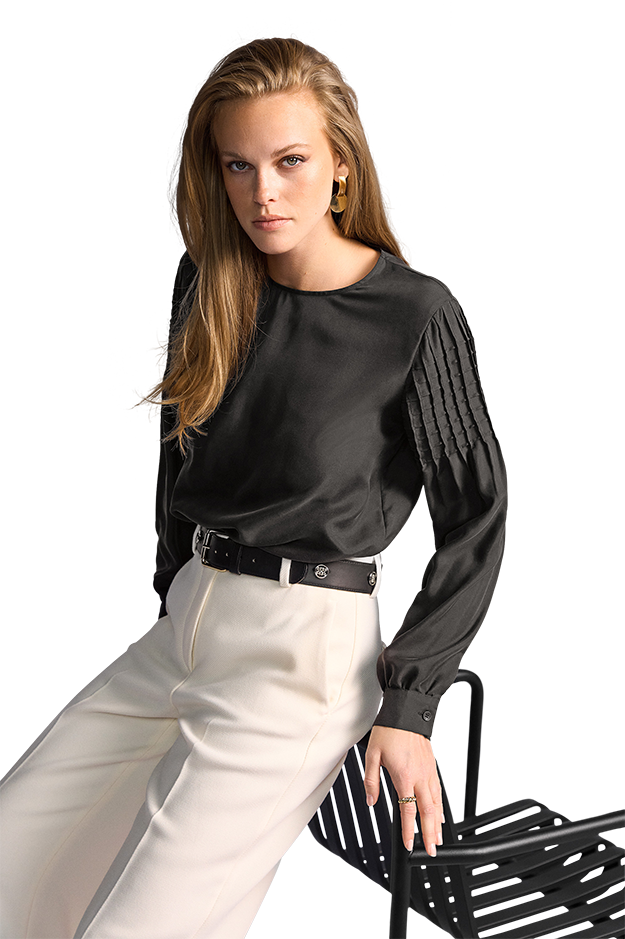 The RIANI silk blouse with round neckline is a true essential for sophisticated looks with class. Crafted from the finest flowing silk, it lends every outfit elegant lightness and a refined finish. The delicate sheen, soft touch, and perfect cut make it a stylish companion – whether for business, dinner, or as a chic highlight in everyday wear. A high-quality it-piece for RIANISTAs who value style, quality, and feminine radiance.