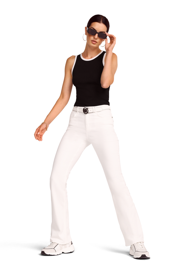 Coloured, please! As beautiful as denim blue is, "woman" should also have denims in other colours. They give a style a new nuance and can be used wonderfully as a chic "total look" or as an accentuated eye-catcher. The wide-fit shape of these elastic trousers is absolutely trendy and not only fashionable, but also comfortable to wear.
